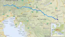 | do Dunaje u Osijeku (Chorvatsko) 45°32′38″ s. š., 18°55′36″ v. d. 90 m n. m. | |