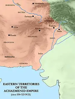 Východní satrapie Achaimeovské říše, včetně Margiány, cca 530 př. n. l.323 př. n. l.
