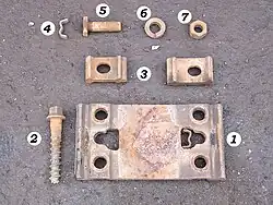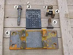 - Hřeby (v současnosti používané v ČR jen u historických tratí (JHMD, Zubrnická museální železnice)