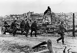 Sovětský svaz se stal jedním ze Spojenců druhé světové války proti Ose Berlín–Řím–Tokio poté, co nacistické Německo zahájilo dne 22. června 1941 proti němu rozsáhlou a ničivou operaci Barbarossa. Zprvu musela Rudá armáda ustupovat až k Moskvě. Po urputných bojích, např. v bitvě u Stalingradu (podzim 1942 – zima 1943), o Kurský oblouk, či obležení Leningradu (dnešní Petrohrad) atd., začala sovětská vojska zatlačovat Wehrmacht západním směrem a dne 2. května 1945 dobyla Berlín.