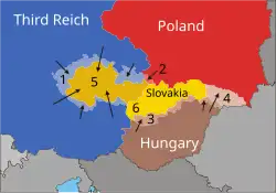 Druhá světová válka začala 1. září 1939 německým a slovenským útokem proti Polsku.[6]