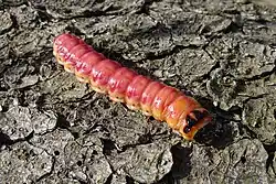 Housenka se 3 roky vyvíjí v hostitelské rostlině.[L 1] První rok žijí společně housenky v jedné chodbě. Kanibalismus mezi housenkami je běžný jev.[1] V literatuře se uvádí, že housenky silně voní po octu. To je pravda, ovšem pouze v případě, že se vyvíjely v dubovém dřevě, které samo o sobě po octu voní. Z jiných stromů získané housenky tuto vůni postrádají.[6] Na konci svého vývoje dosahují housenky délky 8–12 cm.