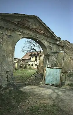 Zachovala se branka a slepá branka, stojící po stranách vjezdu do dvora. Oba otvory branek jsou završeny polokruhem. Nad každým byl v minulosti trojlistý štítek. Branky pocházejí pravděpodobně z přelomu 18. a 19. století.