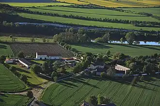 ![]() Západní okraj vsi viděný z protějšího mlčechvostského břehu Vltavy | |