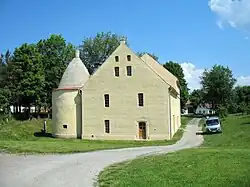 Vlevo od sušárny v místech dnešních zahrádek býval morový hřbitov pro oběti velkého moru v roce 1680, velký kříž, který místo označoval se nyní nachází u kostela.