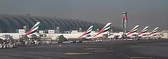 V Dubaji sídlí letecká společnost Emirates, která patří mezi největší letecké společnosti světa, v roce 2015 přepravila přes 50 milionů cestujících. Další významná zdejší aerolinie je nízkonákladová flydubai.