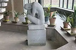 U centrálního schodiště v ploše květinového bazénku je umístěna socha „Opřená“ od Julia Lankáše.