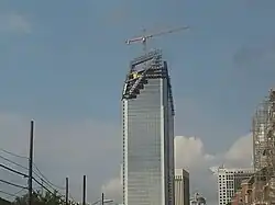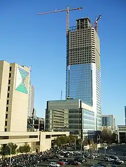 Přestože byl projekt ohlášen již na jaře roku 2004, tak první oficiální vizualizace budovy byly zveřejněny až 6. prosince 2006, což bylo až po zahájení stavby.[1] V původním návrhu měla být budova postavena na parcele o rozloze 5200 m2, měla mít výšku 160 m a 34 podlaží. Stavební práce začaly v únoru 2006 demolicí budovy prodejce pneumatik a krátce poté začalo hloubení 30 m hlubokých základů pro podzemní garáže. Pro odvoz sutě ze základové jámy bylo použito 60 000 sklápěcích vozů, která byla odvezena a využita při stavbě třetí přistávací dráhy pro mezinárodní letiště Charlotte Douglas.[1] V prosinci roku 2009 byla budova zkolaudována a 2. ledna 2010 proběhlo slavnostní otevření.