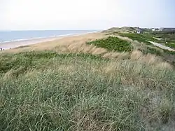 - bílé duny – pohyblivé, ale stabilnější než předchozí, dále od pobřeží; typicky porůstají dunovými travinami jako kamýš písečný (Ammophila arenaria)