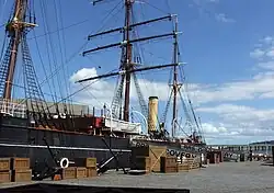 V Dundee na pobřeží Firth of Tay kotví RRS Discovery – Royal Research Ship Discovery postavená v roce 1901 v Dundee pro expedice k Antarktidě.