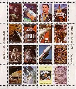 V roce 1963 poradil americký dobrodruh Bruce Condé emírovi za Šardžá, že by mohl vydělat na prodeji známek, které se budou jménem jeho země tisknout v zahraničí a prodávat přímo sběratelům. K projektu se záhy přidaly okolní země. Byl zaměřen na obor tematické filatelie: známky měly náměty z oblasti sportu, dopravy nebo výtvarného umění, byly okázale barevné, časté bylo vydávání aršíků. Neinformovanost autorů známek vedla k řadě kuriózních chyb, známá je například jemenská známka k ZOH 1968, na které je vyobrazen bob se třemi jezdci (ve skutečnosti závodí pouze dvouboby a čtyřboby).[1] Často na známkách kolísal i sám název vydávající země, vzhledem k neujasněné anglické transkripci (například Ra's Al-Khaymah i Ras Al Khaima). Inflace byla značná: Adžmán (Emirate of Ajman) vydal za rok 1971 rekordních 488 známek.[2] Na bloky byla mnohdy tištěna razítka, aby to vypadalo, že známky byly skutečně použity k frankování dopisů.