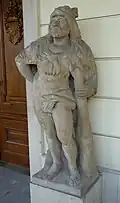 Na dvou pískovcových čtyřbokých soklech stojí v kontrapostu nahé mužské postavy se lví kožešinou na hlavě a na ramenou. Jednou rukou se opírají o sukovitou hůl a druhou o bok. Za nimi ze soklu vyrůstá skalisko. Na jednom soklu je vytesán nápis: „Juráš 1682“[7]