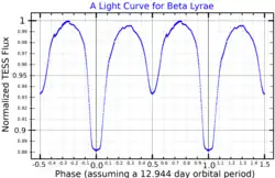 Světelná křivka hvězdy typu 𝛽 Lyrae.