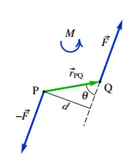 kde F je velikost jedné ze sil, d je kolmá vzdálenost vektorových přímek, na kterých síly leží.