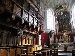 Hlavní oltář byl navržen v roce 1755 dvorním architektem Nicolò Pacassim z Vídně a zdoben krucifixem vídeňského akademického malíře Johanna Carla Auerbacha a bronzovými sochami svatého Františka z Assisi a svaté Terezie z Ávily od dvorního sochaře Balthasara Molla (1768). Renesanční varhany (1560) vytvořil Jörg Ebert z Ravensburgu a místní je popisují jako jedny z pěti nejslavnějších varhan na světě. Panely varhan namaloval Domenico Pozzo z Milána.
