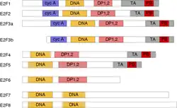 - E2F4, E2F5 – mají represivní účinek na přechod buněk do S fáze[3]
