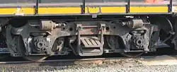 Každý díl je usazen na dvou dvounápravových podvozcích typu Blomberg. Ty byly navrženy americkým konstruktérem švédského původu Martinem P. Blombergem, který se podílel i na vývoji třínápravových podvozků uspořádání A1A pro osobní lokomotivy série E. Podvozky mají rozvor 2,74 m a jejich rámy jsou odlévané. Primární vypružení je provedeno vinutými pružinami, typickým rozpoznávacím znakem těchto podvozků kolébkového uspořádání je však sekundární vypružení provedené příčně uloženými listovými pružinami.[21] Dvounápravový podvozek typu Blomberg a jeho varianty byly využívány až do ukončení výroby čtyřnápravových nákladních lokomotiv EMD v 90. letech.[2]