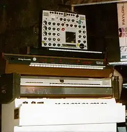 Později byl do Synthi AKS začleněn ve víku digitální sekvencer. Zadávání tónů se provádí citlivou kapacitní klávesnicí Buchla.