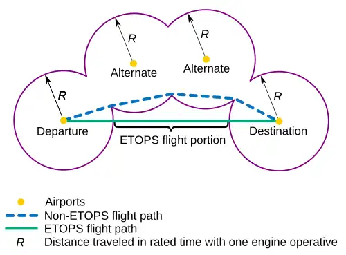 To umožňuje dvoumotorovým dopravním letadlům jako jsou Boeing 737, 757, 767, 777, 787 a Airbus A300, A310, A320, A330, A350 létat na dálkových tratích (speciálně přes oceány, pouště nebo polární oblasti), které byly dříve pro dvoumotorové letouny z bezpečnostních důvodů uzavřeny.
