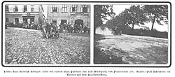 Dobové fotografie z konkurenční jízdy Vídeň – Vratislav – Vídeň (r. 1905); z popisků je patrné, že na pravé fotografii je snímek z Ecce Homo – průjezd hraběte Schönborna na Lohner-Porsche v místech nad šternberským kostelem[17]