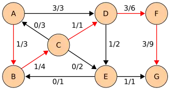 Pro podrobnější popis vizte Fordův-Fulkersonův algoritmus.