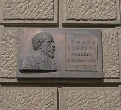 Pamětní deska Edmunda Husserla na nové radnici v ProstějověÜber den Begriff der Zahl. Psychologische Analysen (O pojmu čísla, 1887)