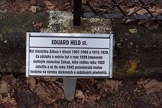 - ↑ Altbürgermeister Held gestorben (nekrolog, německy. Reichenberger Zeitung. 4. 5. 1937, s. 3. Dostupné online.