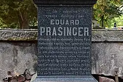 - ↑ Pohřeb veledůstojného p. kapitolního děkana Edvarda Prašingera. Obnova [online]. 1895-10-04 [cit. 2024-01-18]. Dostupné online.
