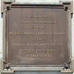 - ↑ FARMINGTON, Mailing Address: 1 Washington Parkway; US, PA 15437 Phone:329-5512 Contact. Braddock's Grave - Fort Necessity National Battlefield (U.S. National Park Service). www.nps.gov [online]. [cit. 2019-09-08]. Dostupné online. (anglicky)
