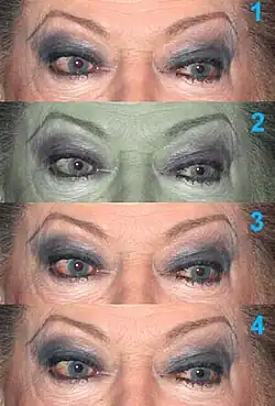 - Před zábleskem se rozsvítí nebo rozbliká červená dioda na fotoaparátu - lidské oko reaguje nejcitlivěji právě na červené světlo. Cílem toho je stažení zorniček a snížení množství světla odraženého od očního pozadí. Tato metoda je méně úspěšná.[1]