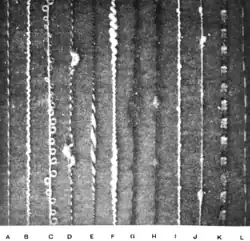 | B | spiral | ondé | Skaná ze dvou nití s rozdílnou tloušťkou a zákrutem |