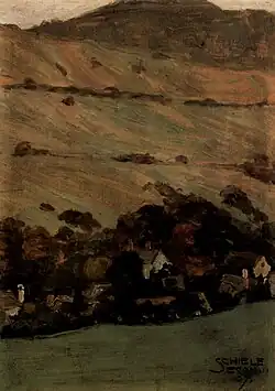 Na závěr svého života Schiele poměrně opustil akty a začal se zabývat spíše „klidnějšími“ náměty. V obrazech přírody nebo krajiny se Schiele v souladu se svým celkovým uměleckým vývojem odvrátil po prvních pokusech od popisného zobrazování a dospěl oklikou přes klimtovskou ornamentalizaci předmětů ke způsobu zobrazení, v němž rostliny a věci získávají ve stále větší míře antropomorfní vlastnosti.