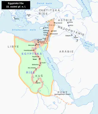 Rozsah egyptské říše za vlády Thutmose I. (1504–1492 př. n. l.)