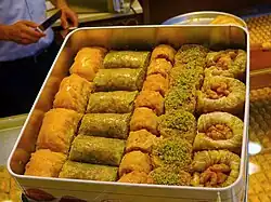 - Baklava, sladkost z vrstev tenkého listového těsta, plněná sekanými ořechy a slazená sirupem nebo medem.