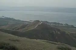 ![]() Pohled na Ejn Gev a Galilejské jezero z Golanských výšin | |