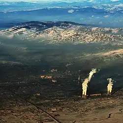 Spolu s rozmachem průmyslu dochází k zemi i k postupně sílícím problémům s kvalitou ovzduší. Nejsilnější problémy se znečištěním má hlavní město Ulánbátaru – nejhustěji osídlené místo v zemi. Za silné znečištění ovzduší je zde, kromě individuální automobilové dopravy, zodpovědný místní těžký průmysl a uhelné elektrárny.[22] Mezi lety 1995 a 2002 se v hlavním městě zdvojnásobil počet osobních automobilových vozidel. Velká část z nich navíc nesplňuje emisní limity. Zvýšení objemu osobní automobilové dopravy přímo koresponduje se zvyšujícím se objemem oxidu uhelnatého a pevných částech obsaženého v ovzduší.