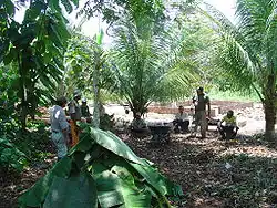 Když doroste výšky kolem 1,2 m, je zalita vodou a zakryta velkými listy. Po nějaké době, když si hromada ulehne, je vytažen centrální kůl, který umožní aeraci.