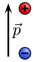Vektor elektrického dipólového momentu mezi dvěma opačnými náboji.