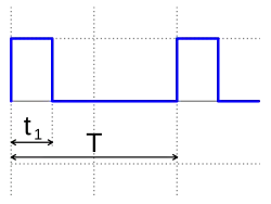Různé průběhy proudu mají tedy různé aplikace. Měřítkem je poměr špičkové hodnoty proudu respektive výkonu ku jeho střední hodnotě. V angličtině Crest Factor nebo také PAR (Peak-to-Average Ratio), případně PAPR (Peak-to-Average Power Ratio). K pochopení této hodnoty slouží obrázek vpravo a následující vzorce. Pokud je výška obdélníkového pulzu jednotková, je střední hodnota takového průběhu rovna a poměr špičkové hodnoty ku střední je .