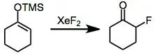 Jako selektivní monofluorační činidlo může sloužit fluorid xenonatý, xenoničitý nebo xenonový. Nestabilita a vysoká cena těchto sloučenin však způsobuje, že se využívají méně než dusíkatá fluorační činidla.[17]