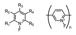 Existují také specializovaná elektrofilní fluorační činidla, jako jsou neutrální heterocykly obsahující vazby N–F;[10] používají se k fluoracím určitých užších skupin substrátů.