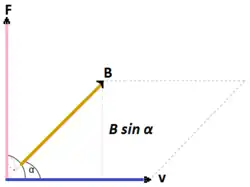 kde je úhel mezi vektory a , pokud se náboj pohybuje kolmo na magnetické pole, tj. , dostáváme: