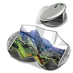 Společnost QMT založila technologii barevného papíru, kterou se nechala inspirovat u motýlích křídel. S pomocí miniaturních otvorů, které se otevírají a zavírají, se promítá jedna z barev modelu RGB.[1]