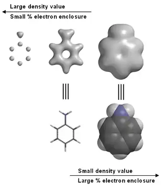 kde P je operátor hustoty. Elektronové hustoty se popisují pomocí isopovrchů (povrchů isohustoty) s velikostmi a tvary povrchů, určovaných zvolenými hodnotami hustoty, nebo procentuálním zastoupením obsažených elektronů.