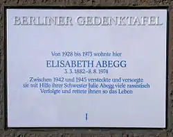 Elisabeth Abeggová, nepřechýleně Elisabeth Abegg (3. března 1882 Štrasburk – 8. srpna 1974 Berlín), byla německá učitelka a členka německého protinacistického odboje.