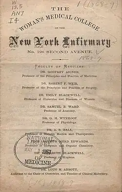 - ↑ a b c d BOYD, Julia. The Excellent Doctor Blackwell: The Life of the First Woman Physician. [s.l.]: Thistle Publishing, 2013. Dostupné online. ISBN 9781909609785.