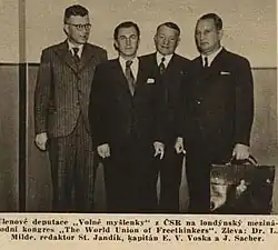 Emanuel Voska (druhý zprava), Kongres volných myslitelů, Londýn, 1938