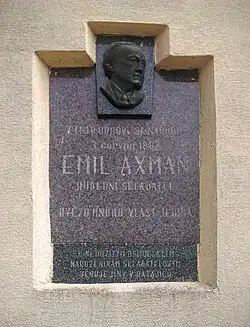 Obrázky, zvuky či videa k tématu Emil Axman na Wikimedia Commons - Fotografie náhrobku na hřbitově v Kroměříži