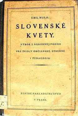 - ↑ HULA, Emil; Slovenské květiny - Výbor z národní poezie pro školy občanské, střední i pedagogů, Praha: v roce 1923 Státní nakladateľstvo.str.8-9