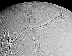 ![]() Enceladus na snímku pořízeném sondou Cassini | |